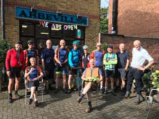 There was nevertheless a grand départ of a kind for myself and the other 11 riders taking part in the prologue. Three miles or so after setting out from St Saviour’s church in Herne Hill, we turned into Abbeville’s, the café on Clapham Park Road run by First Step Trust, one of two charities for which this year’s ride is raising sponsorship. The other is Tumaini Health, which is building a health centre for the village of Rwika in eastern Kenya. We enjoyed coffees from Abbeville’s, posed for pictures and headed west. (You can find out more and donate here)